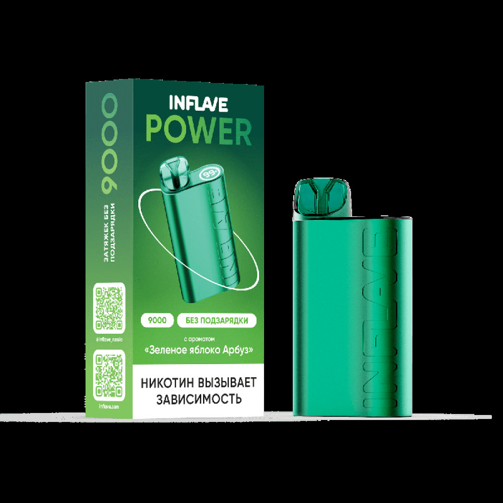 Электронная сигарета INFLAVE POWER 9000 затяжек Зеленое Яблоко Арбуз - купить в Ревде