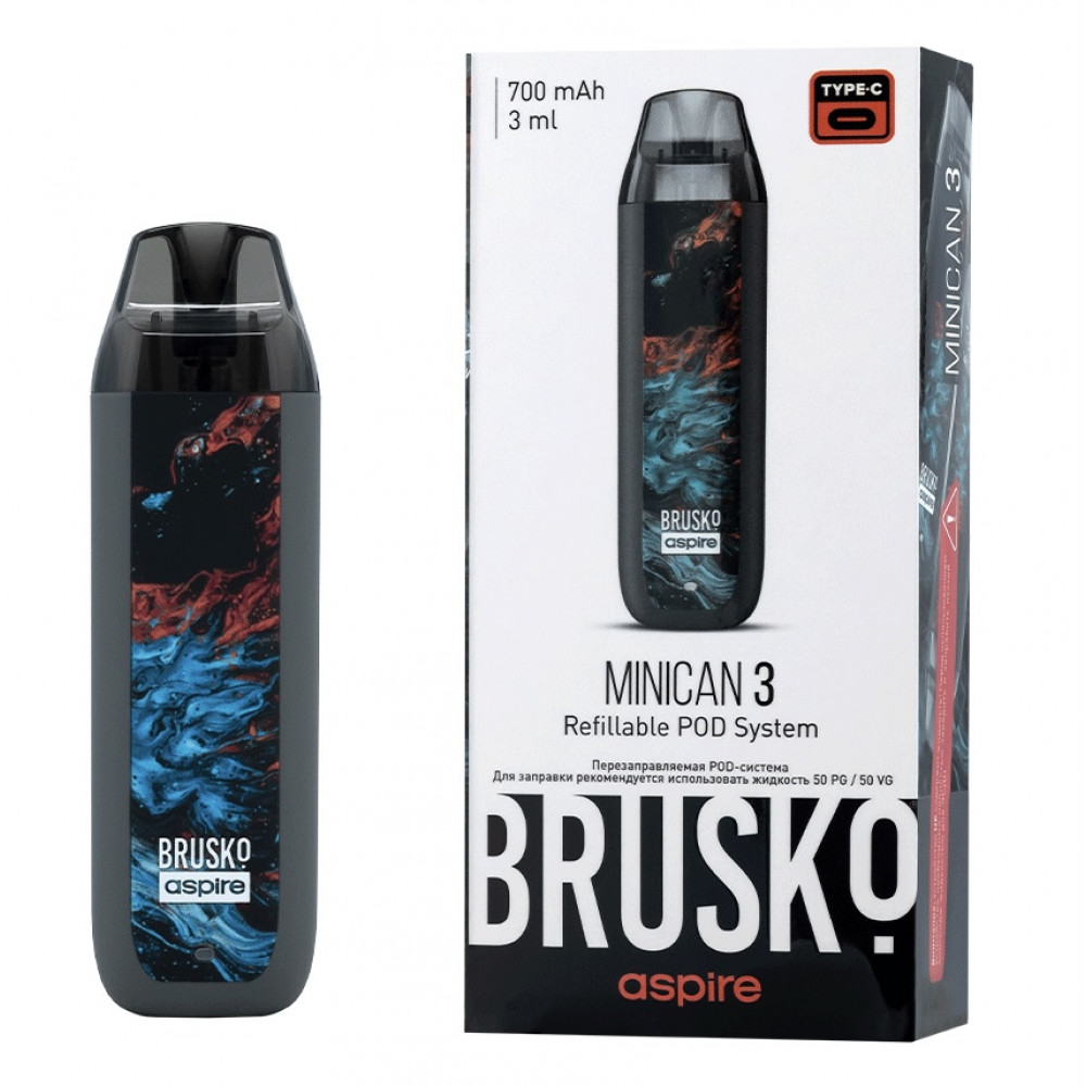 Перезаправляемая Под-Система Бруско Миникан 3 (Brusko Minican 3) 700 mah, Серый Флюид - купить в Ревде